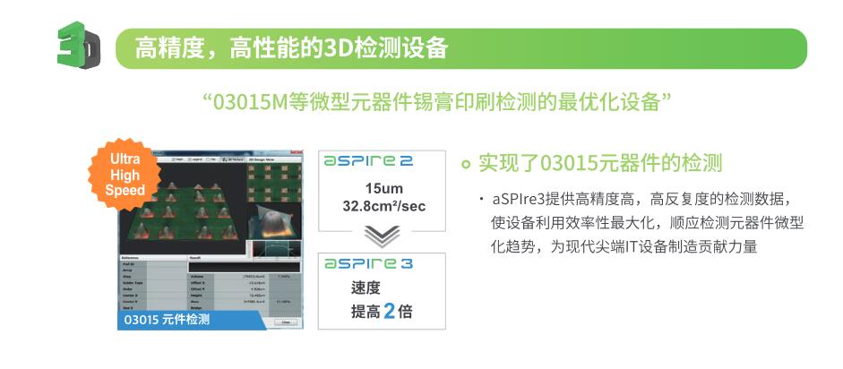 KOH YOUNG/高永 aSPIre 3 錫膏檢測機功能特點 ●測量精度和檢測可靠性行業領先 - 可消除陰影問題、基本水平設置和投影方向問題 - 全三維異物檢測解決方案,適用于整個 PCB - 高生產力與最高精度珠聯璧合